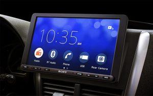 A Sony XAV-AX8000 jelzésű infotainment rendszere kifejezetten nagy méretű kijelzővel