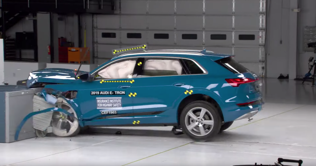 Az Audi teljes mértékben elektromos hajtással működő városi terepjáróját, az e-tront az IIHS (Insurance Institute for Highway Safety) küldte neki az akadályoknak, és törte össze kellő alapossággal.