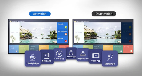 Testre szabott információk: A tévén egyszerűen beállítható az interaktív Home Menu, aminek révén a szálloda saját koncepciójának megfelelően juttathat el személyre szabott információkat a vendégekhez. Így például mód nyílik arra, hogy a hotel szolgáltatásaira ily módon hívják fel a figyelmet, illetve egyéb fontos információkat közöljenek a szobák ideiglenes lakóival.