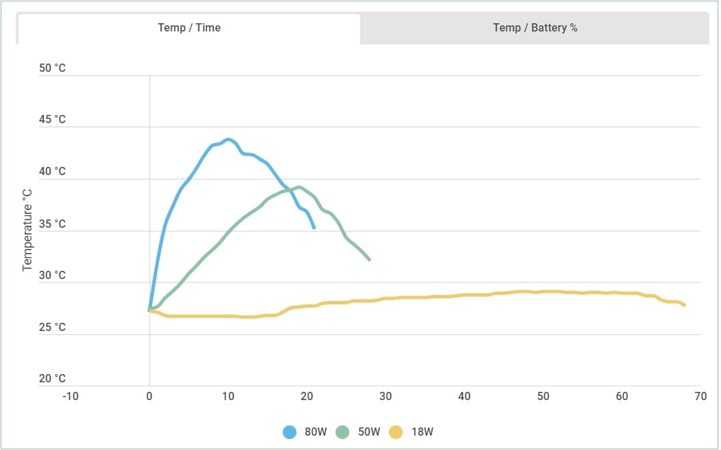 Sajnos azonban a Mi 10 Ultra ezzel a gyorstöltéssel 43,8 Celsius-fokig melegszik töltés közben, és bár a töltés vége felé visszahűl, a 4500 mAh-s akkunak ez annyira nem tesz jót hosszú távon. Nem csoda tehát, hogy a gyártók többsége vonakodik 18-25 wattosnál erősebb adaptert mellékelni/támogatni (lásd Apple, Samsung, Sony, Google, például).