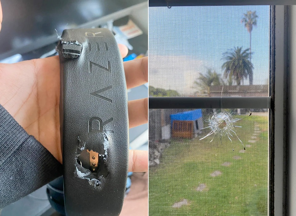 A tinédzser éppen játszott, amikor délelőtt fél 11 körül hirtelen egy kóbor golyó hatolt be az ablakon, és súrolta a Razer headsetet, tönkretéve a fejpántot. Vélhetően a töltényt valaki a közelben lőtte ki, valahonnan egy háztömbbön belülről. A gondviselésnek köszönhetően a kóbor golyó csak megpattant a fejhallgatón, de még belegondolni is szörnyű, hogy mi történhetett volna, ha a fiatal csak egy kicsit is másként tartja a fejét, vagy éppen megmozdul. Hozzá kell tenni, hogy talán nem történt volna tragédia, figyelembe véve, hogy a lövedék messziről érkezett, és az ablakon való behatolás is csökkenthette a sebességét.