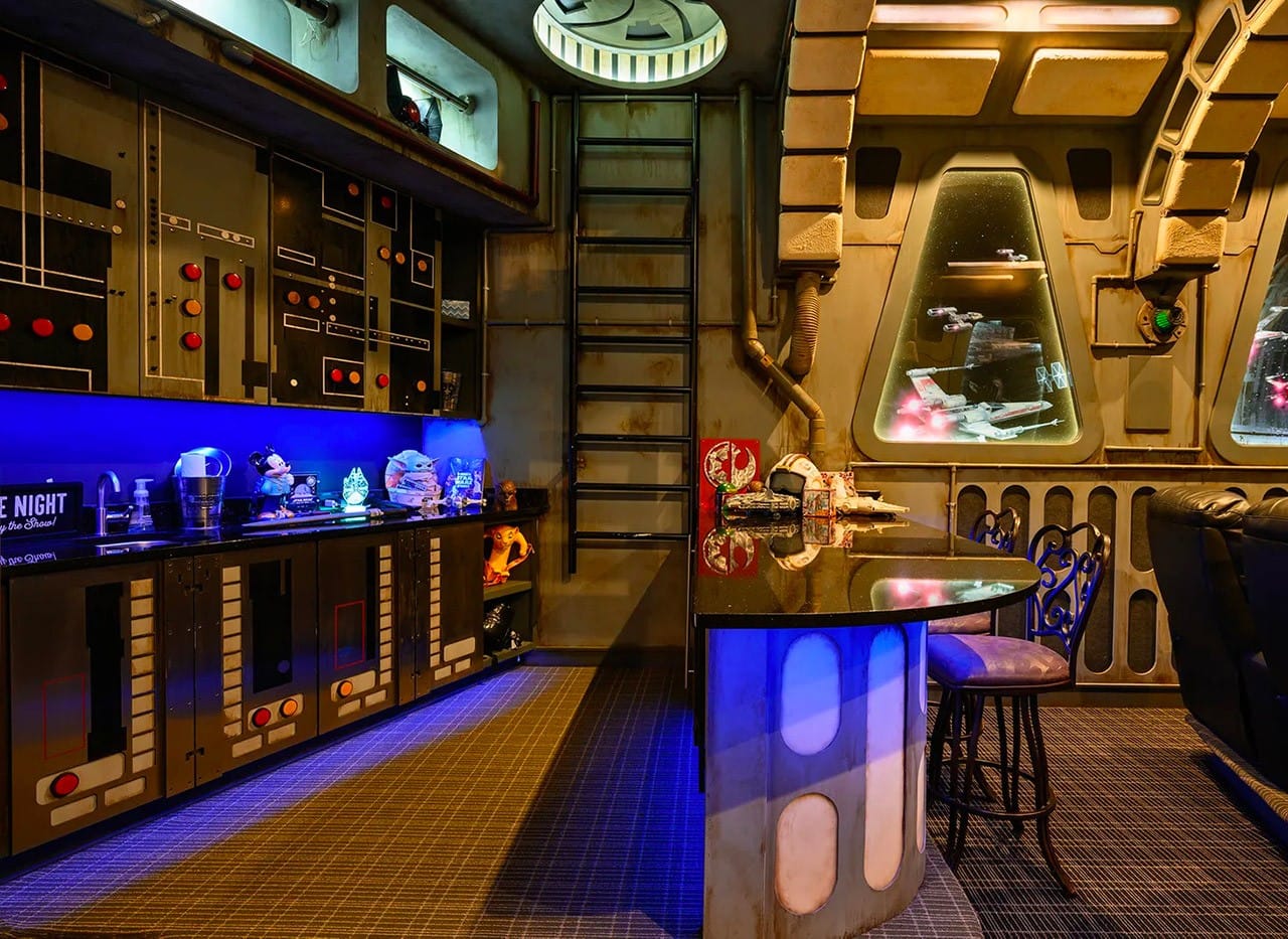 Az átlagpolgár számára egy 5,6 milliárd forintos összeg szinte már értelmezhetetlen, legalábbis abban a kontextusban mindenképpen, hogy akadnak, akik kedvtelésből költenek ennyit. A Walt Disney World szomszédságában lévő Golden Oakban van egy házikó, ami kapott egy Millenium Falcon tematikájú tévészóbát. Jól látható, hogy valóban nem volt spórolás, és a kivitelezésnél nagyon ügyeltek az autentikus környezet megteremtésére.