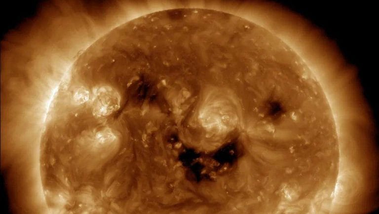 A NASA Nap-figyelő műholdja, a Solar Dynamics Observatory ritka, „mosolygós”