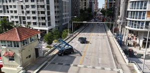 Egy daru leszakadt darabja zuhant egy Teslára, a benne ülő